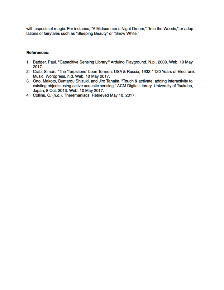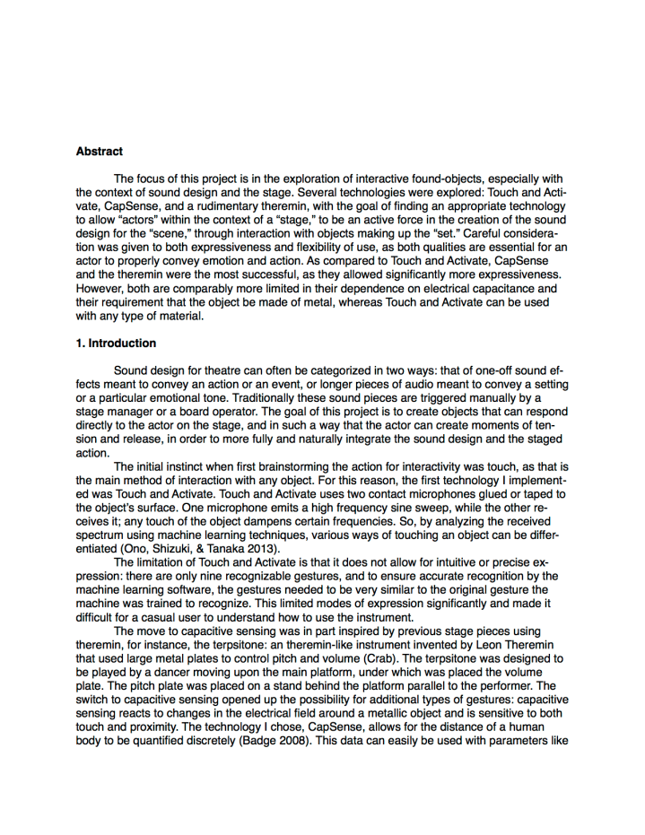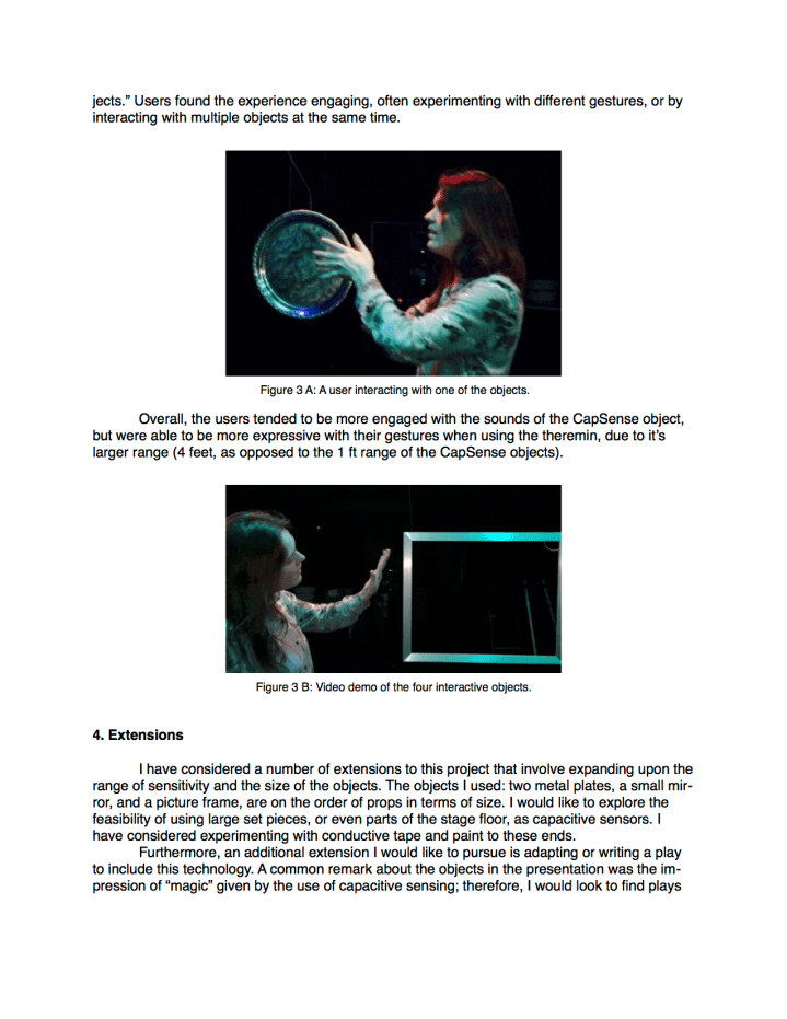 The capstone project I chose for my undergraduate degree involved creating an installation of touch- and proximity-sensitive objects.